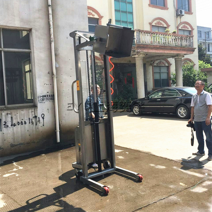 不銹鋼拉缸儲料桶升高翻轉(zhuǎn)卸料車
