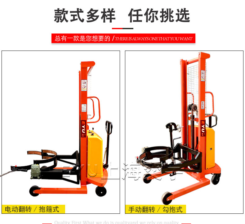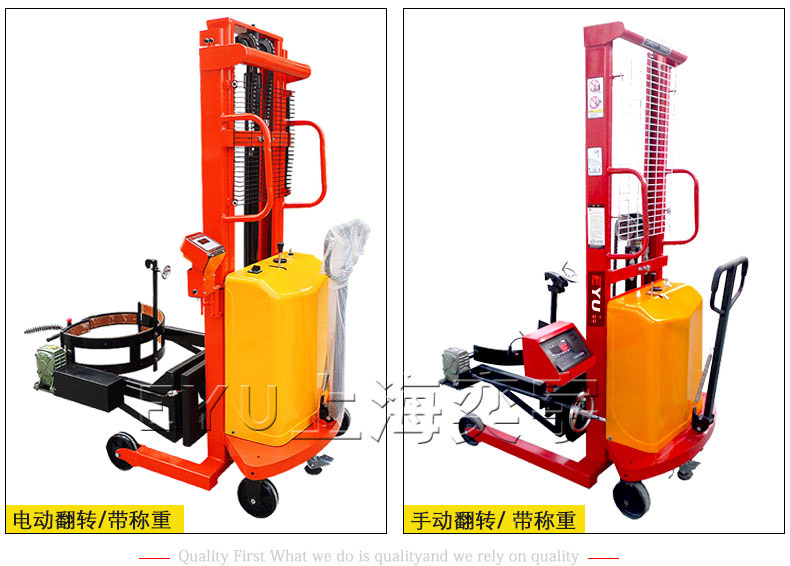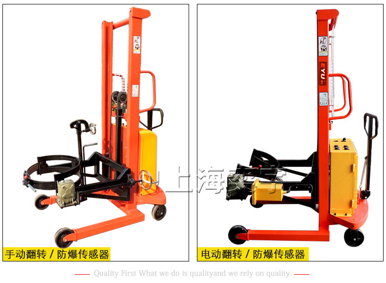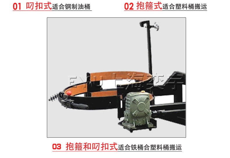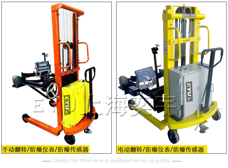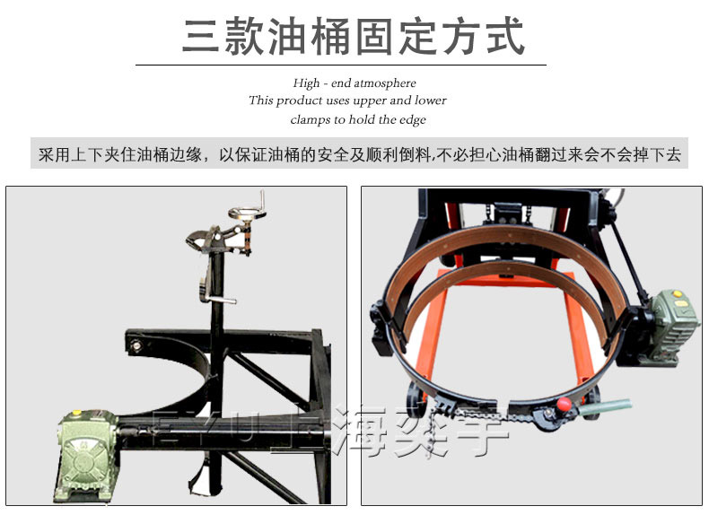 5.手動翻轉(zhuǎn)/電動翻轉(zhuǎn)兩種模式可選 叼扣式、抱式、勾抱式三種油桶夾緊方式,叼扣式用于鐵桶,抱式用于塑料桶,勾抱式鐵桶塑料桶兩用。總有一款適合您。非標(biāo)抱箍 可定制 可選帶電子稱重功能,稱重精度100g. 稱重儀表有標(biāo)準(zhǔn)簡單顯示功能,打印型儀表,防爆稱重顯示儀表。可選防爆功能用在危險區(qū)域。防爆產(chǎn)品都有防爆合格證,放心使用。