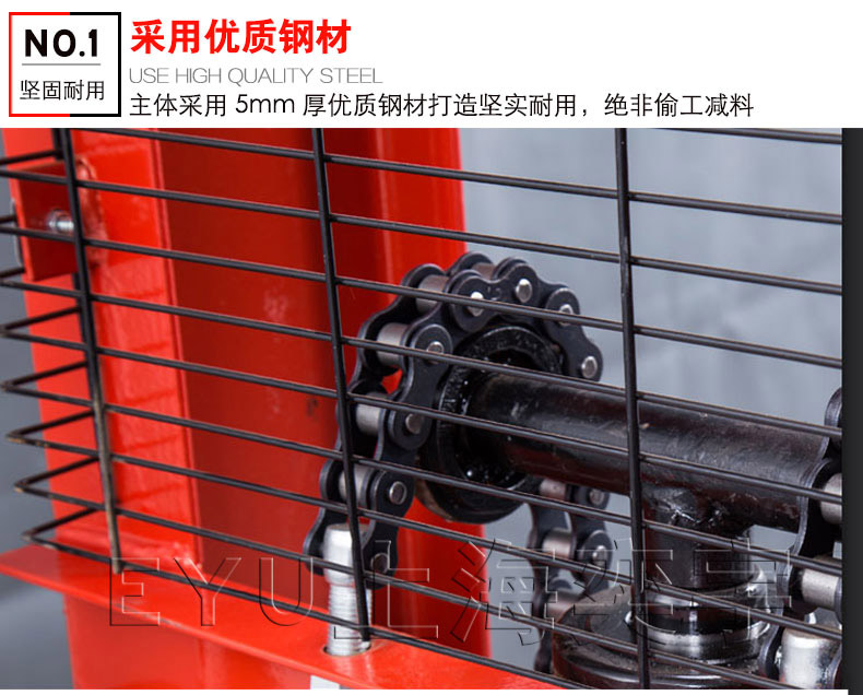 4.高質(zhì)量的油缸,起升速度快,起升高度能達(dá)到1500mm