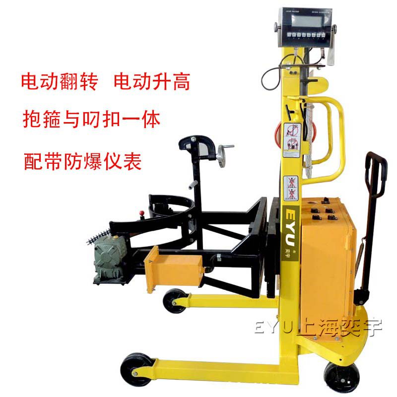 5.手動翻轉(zhuǎn)/電動翻轉(zhuǎn)兩種模式可選 叼扣式、抱式、勾抱式三種油桶夾緊方式,叼扣式用于鐵桶,抱式用于塑料桶,勾抱式鐵桶塑料桶兩用??傆幸豢钸m合您。非標(biāo)抱箍 可定制 可選帶電子稱重功能,稱重精度100g. 稱重儀表有標(biāo)準(zhǔn)簡單顯示功能,打印型儀表,防爆稱重顯示儀表??蛇x防爆功能用在危險區(qū)域。防爆產(chǎn)品都有防爆合格證,放心使用。