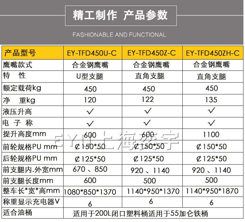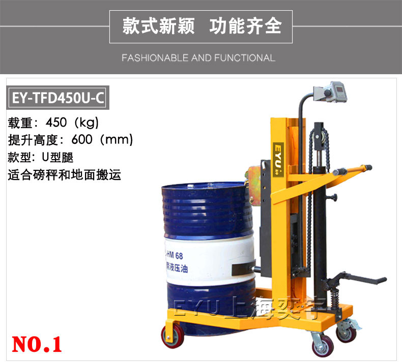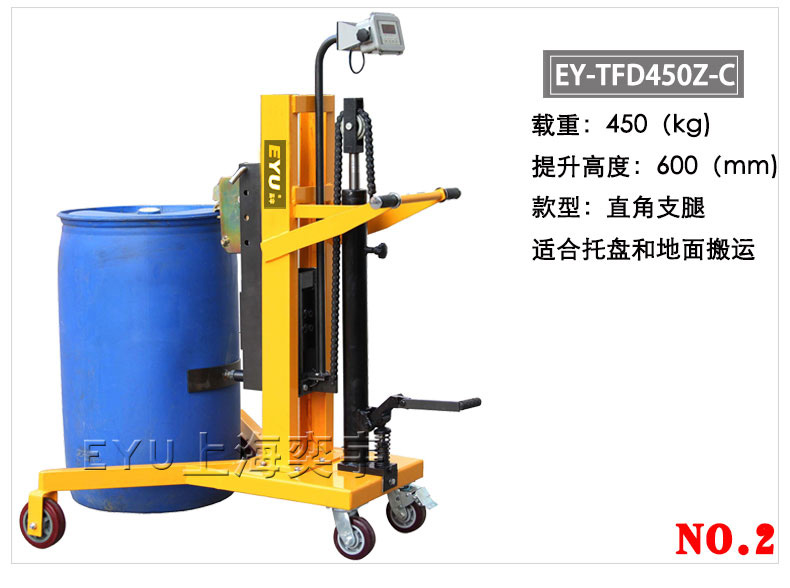 EY-TFD450系列稱重油桶堆高車詳細參數(shù):其中一個型號參數(shù):