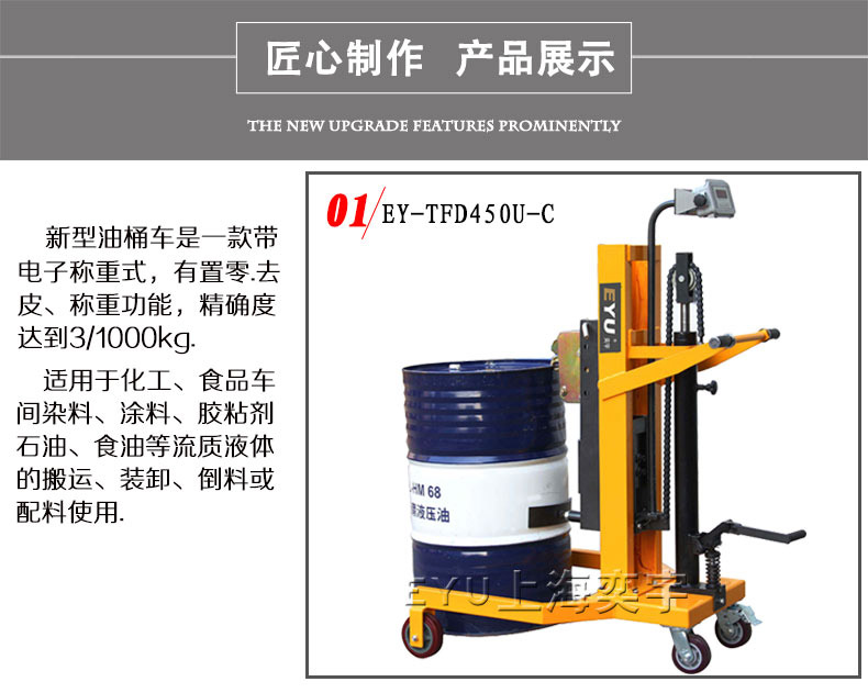 2.適用于各種桶的搬運、稱重、上下托盤裝卸等使用。