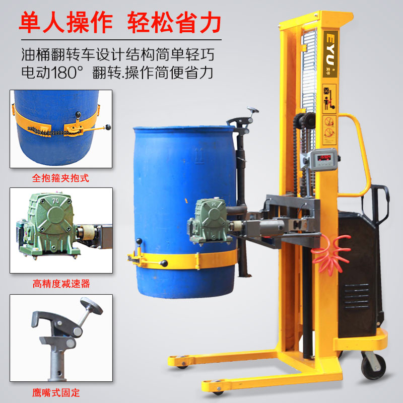 5.抱箍式與叼扣式一體,適合鋼制油桶和塑料油桶電動翻轉(zhuǎn)。