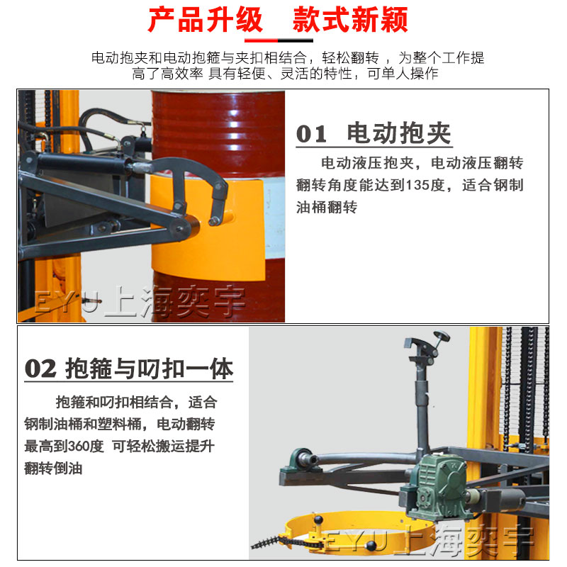 EY-YYL600全電動油桶翻轉(zhuǎn)車功能: