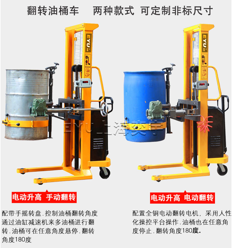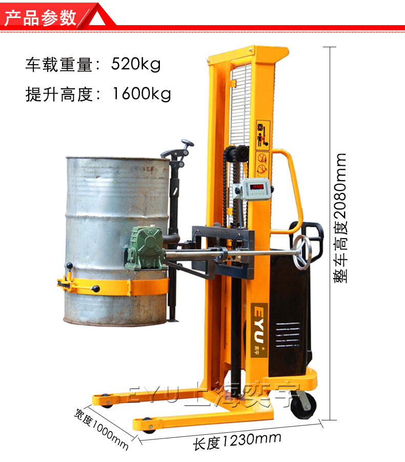 EY-YYL520-C帶電子秤手動傾倒油桶車功能: