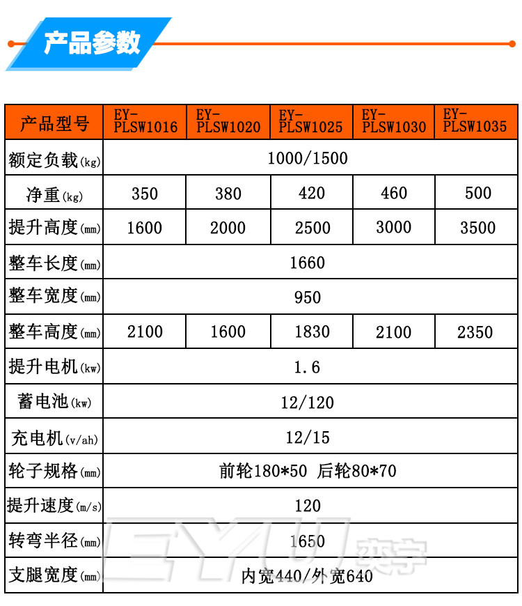 EY-PLSW系列手動(dòng)電升堆高車(chē)帶稱(chēng)重詳細(xì)參數(shù):