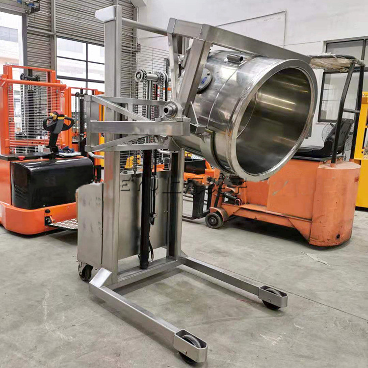 不銹鋼拉缸油漆涂料儲料桶電動升高起升傾斜倒料翻轉(zhuǎn)旋轉(zhuǎn)搬運車