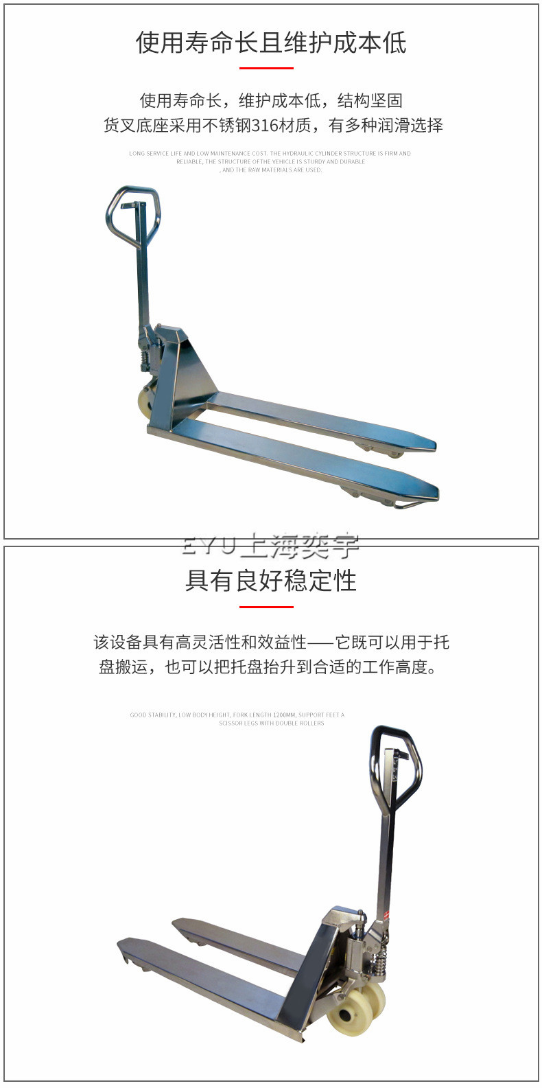 不銹鋼手動(dòng)液壓叉車特點(diǎn):