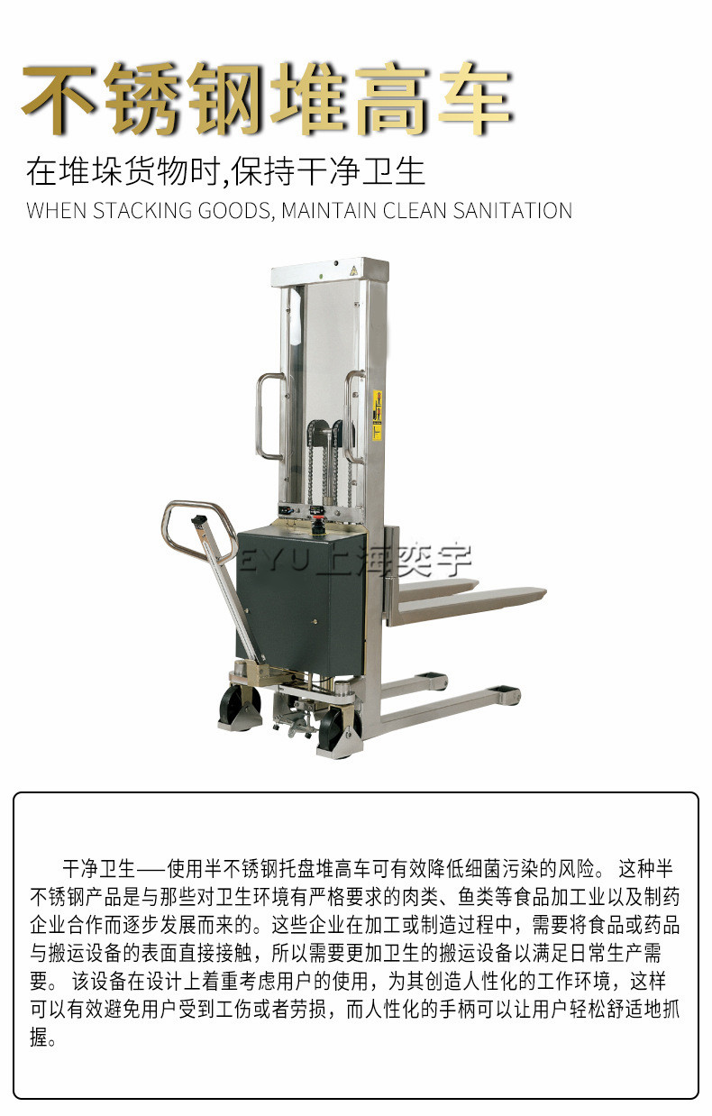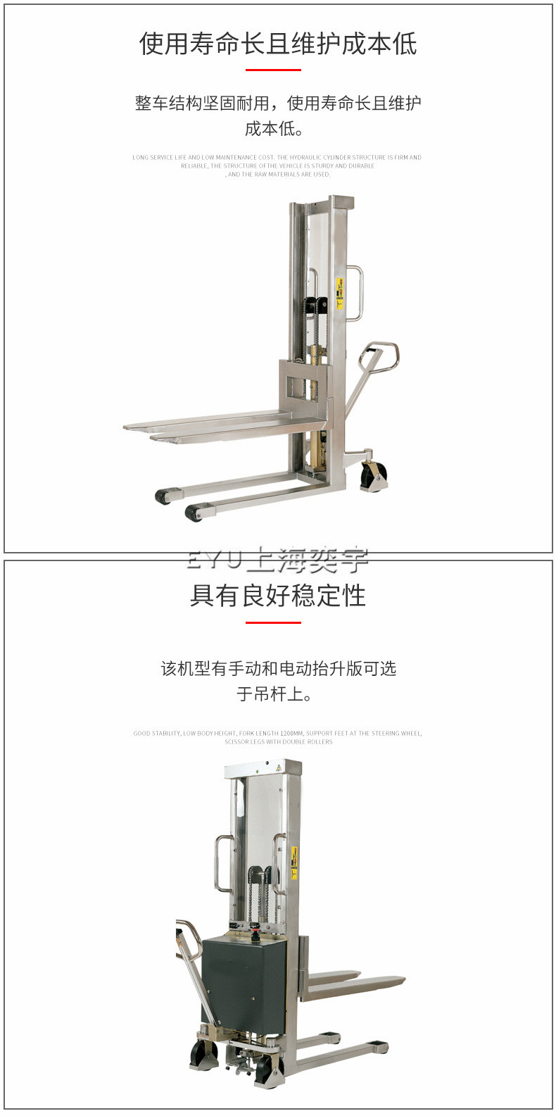不銹鋼款手動液壓堆高車特點(diǎn):