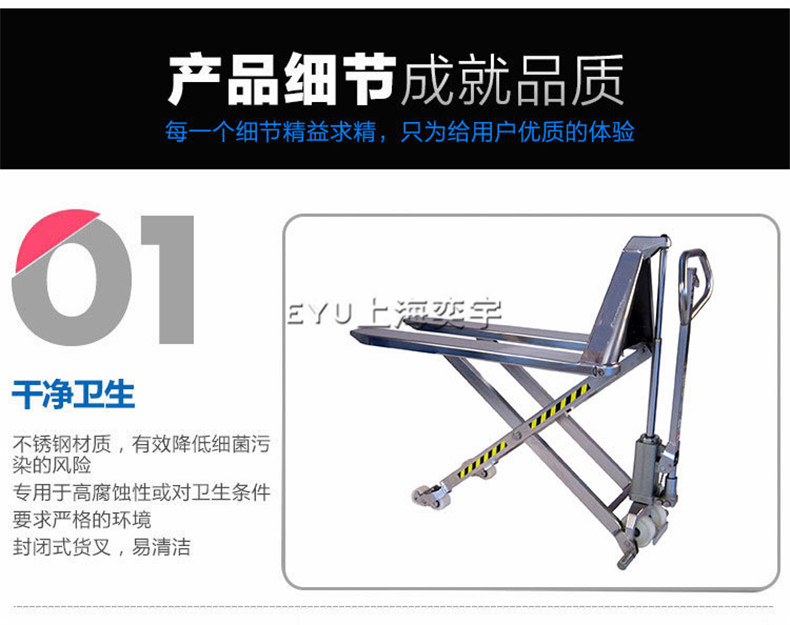 半不銹鋼手動(dòng)液壓剪桿叉車特點(diǎn):