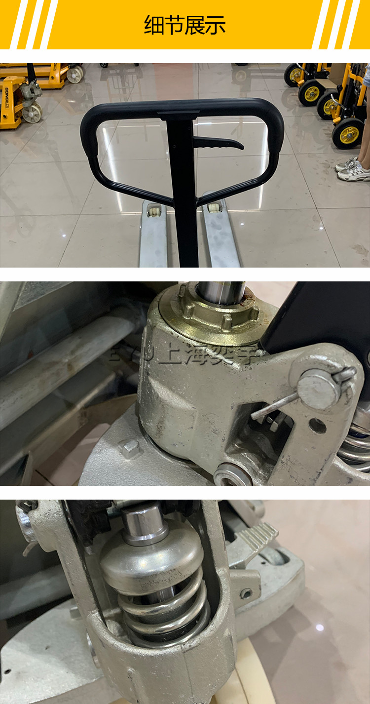 不銹鋼手動托盤車的設計是潮濕或苛刻環(huán)境作業(yè)的選擇,在要求絕對衛(wèi)生的特定作業(yè)環(huán)境中,設計的優(yōu)點則顯得尤為突出;