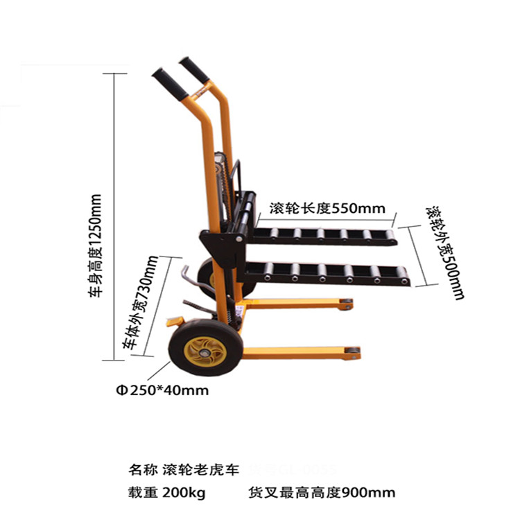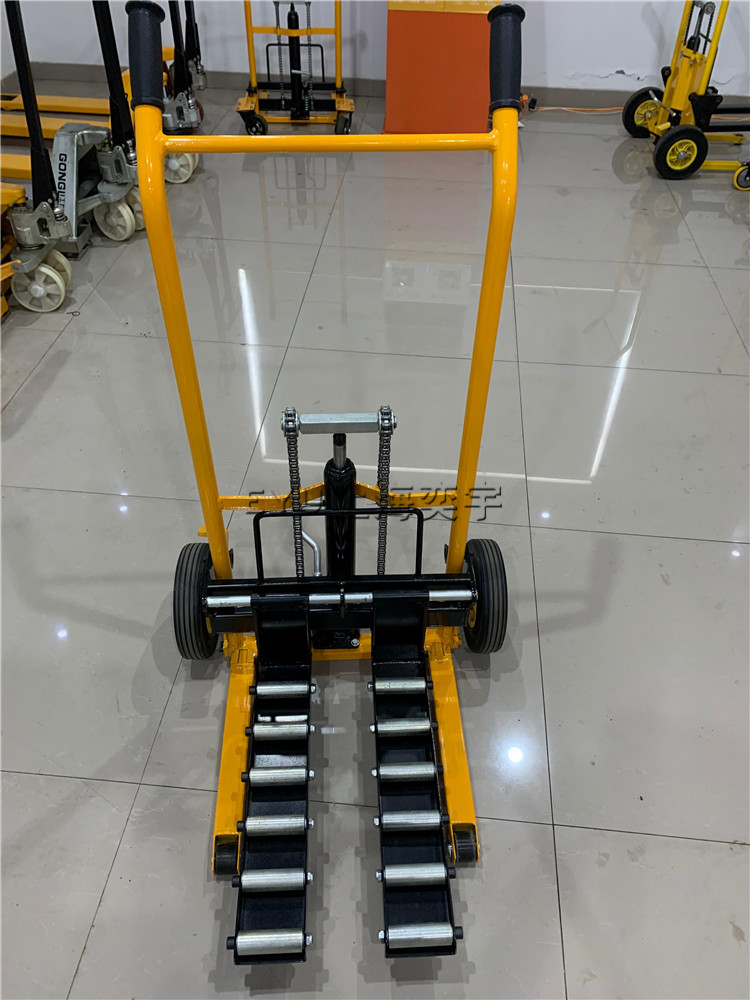 帶滾輪款輕型堆高車適合戶外及地面不平整的工作場所。