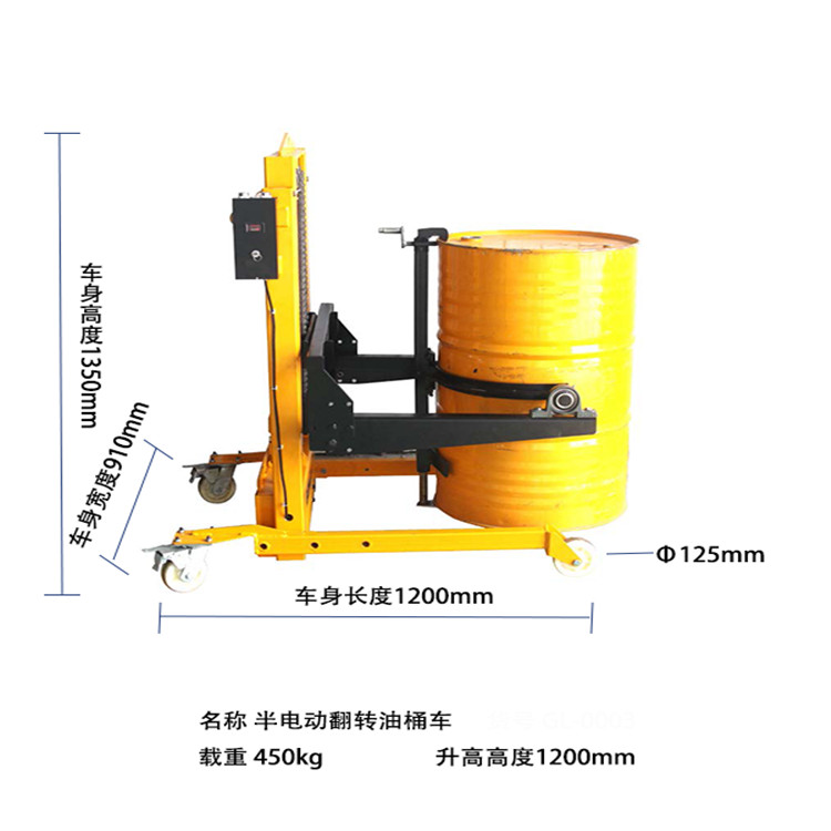 EYU-0003半電動(dòng)翻轉(zhuǎn)油桶車 電動(dòng)升降手動(dòng)翻轉(zhuǎn)油桶車